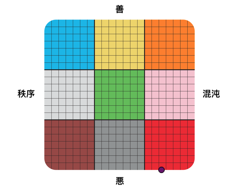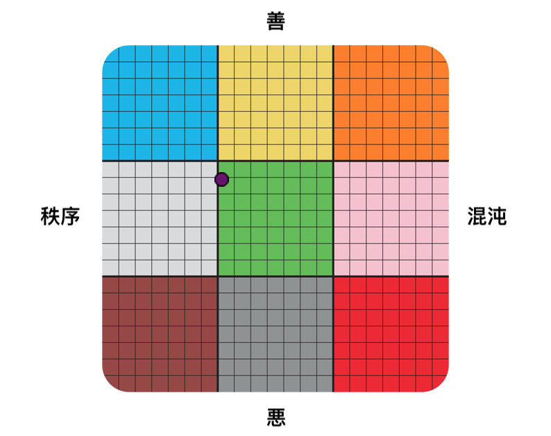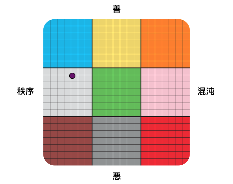 最近はまじの雑記しか書いてないので、D&Dも見たことだし、遊び程度にAANのキャラで性格アライメント診断やった。